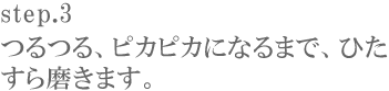 ![]() ヤスリで削ったところはザラザラです。そのままでは美観をそこねますので、「ペーパー」と「バフ」を使って磨きます。 バフとは、研磨剤を付けた布を高速回転させて磨きを行う機械で、なかなかいい仕事をしてくれます。 |